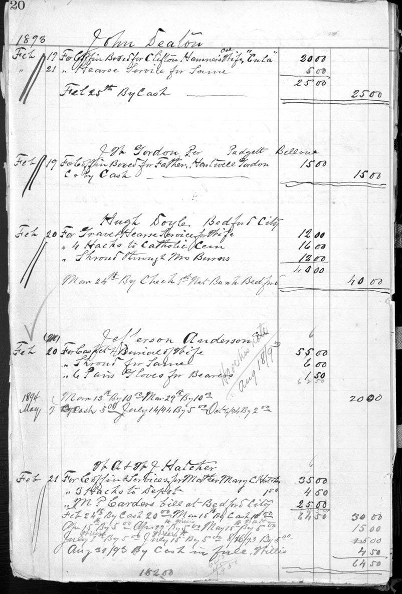 Charge for 3 hacks to Depot; M. P. Carder’s bill at Bedford City