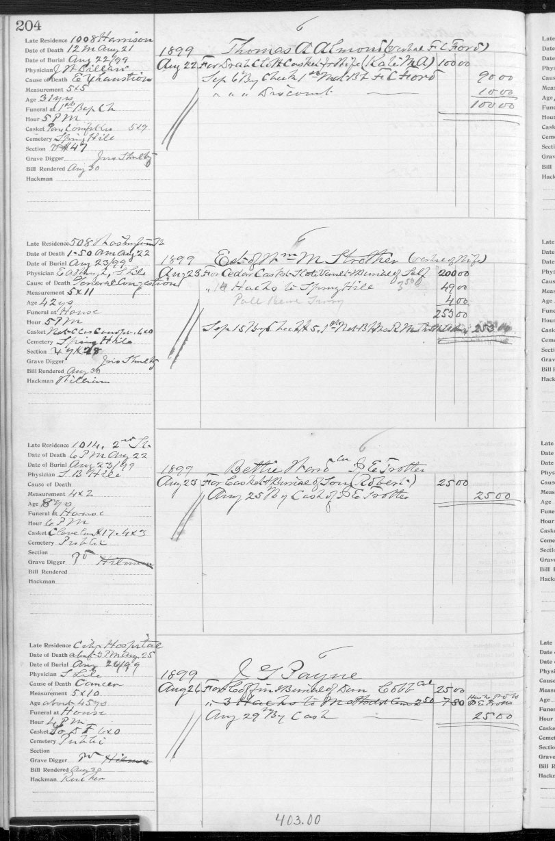 Place of Interment: Spring Hill Cemetery